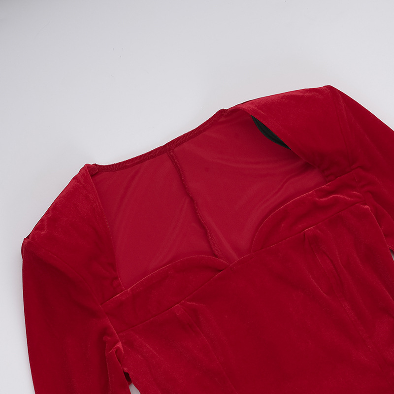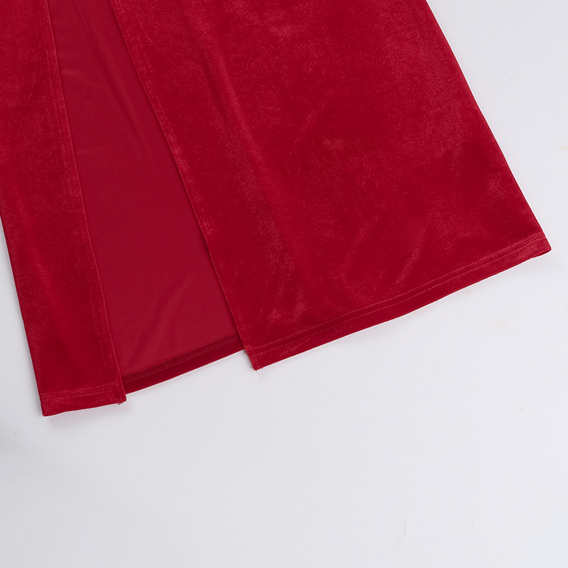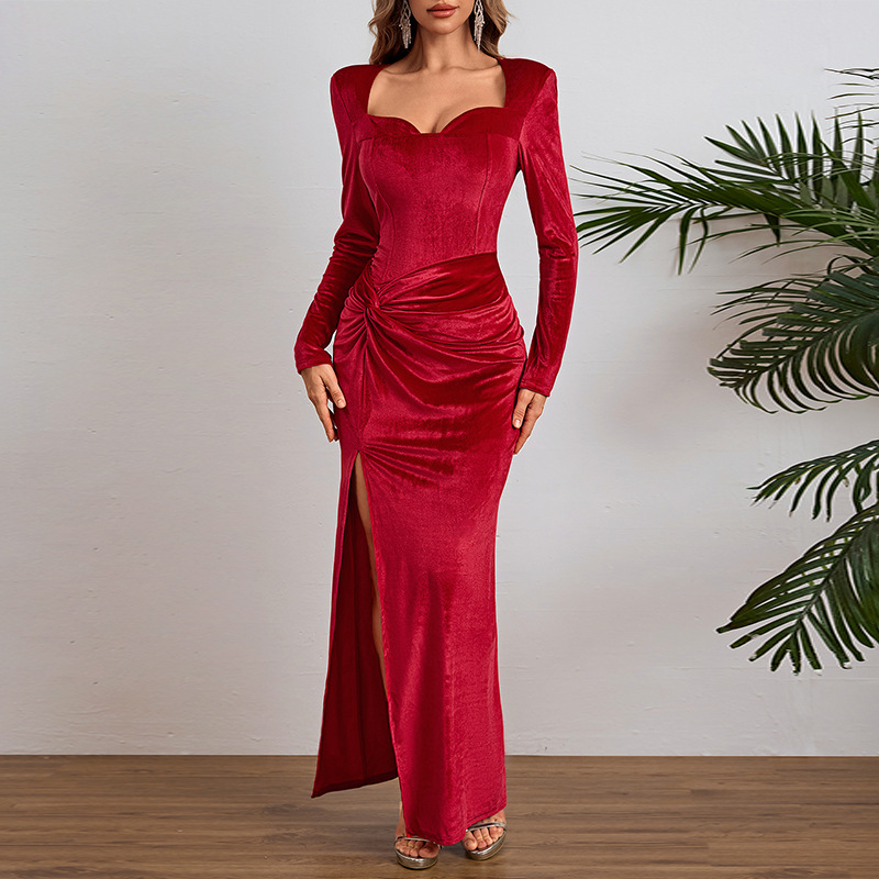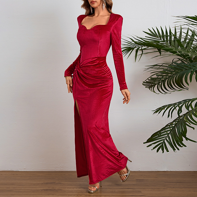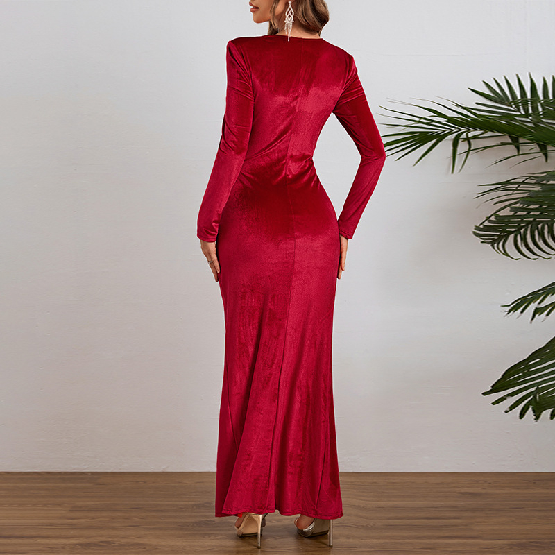 Socialite Style Elegant Long Sleeve Velvet Slit Formal Dress
