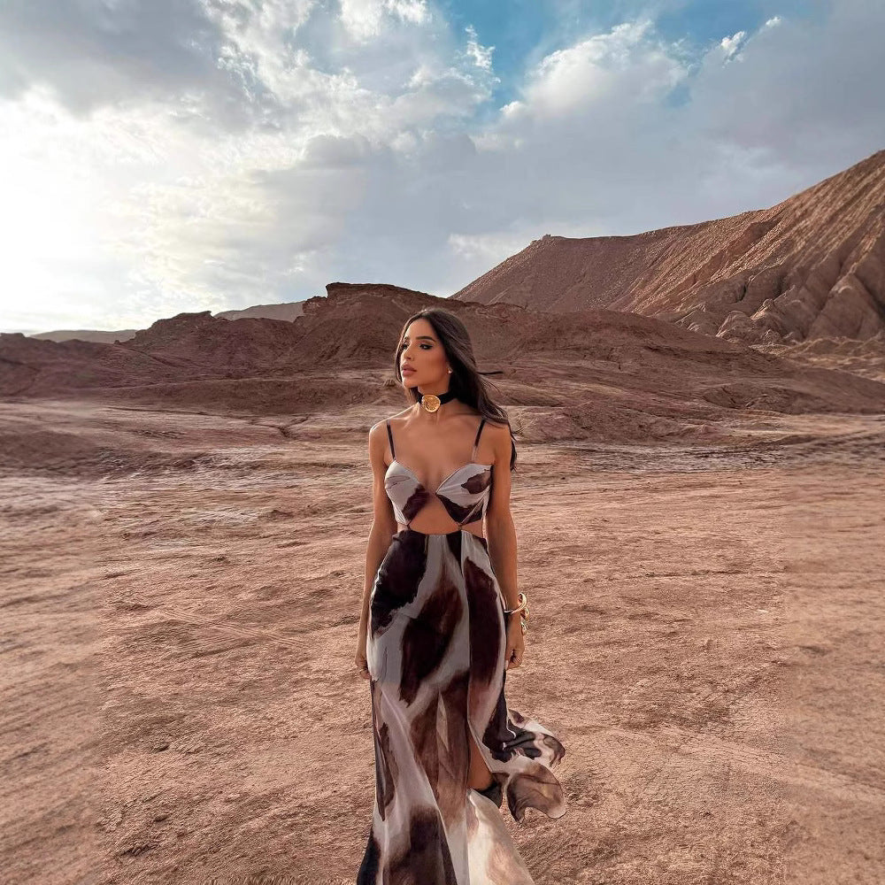 Tie-dye Spaghetti Straps Sleeveless Elegant Dress