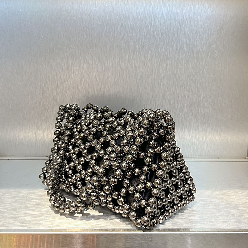 Trendy Hollow Out Cutout Shiny Crystal Handmade Beaded Woven Bag Portable Underarm One Shoulder Crossboby Bag