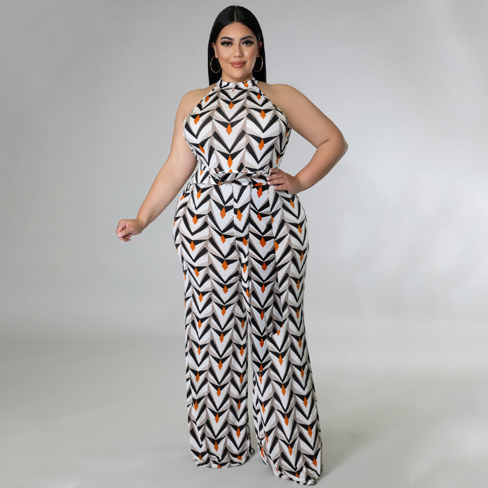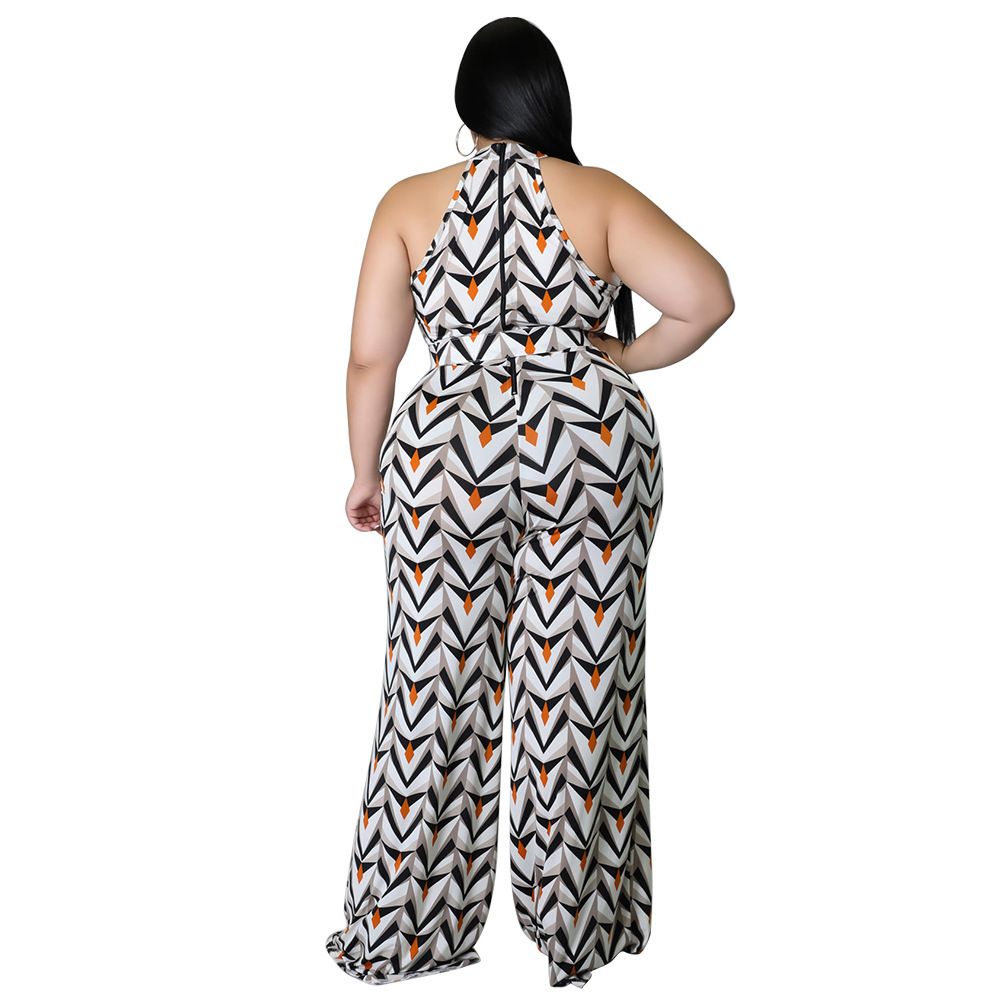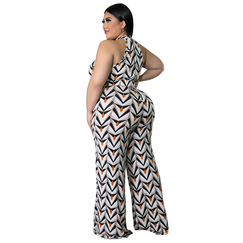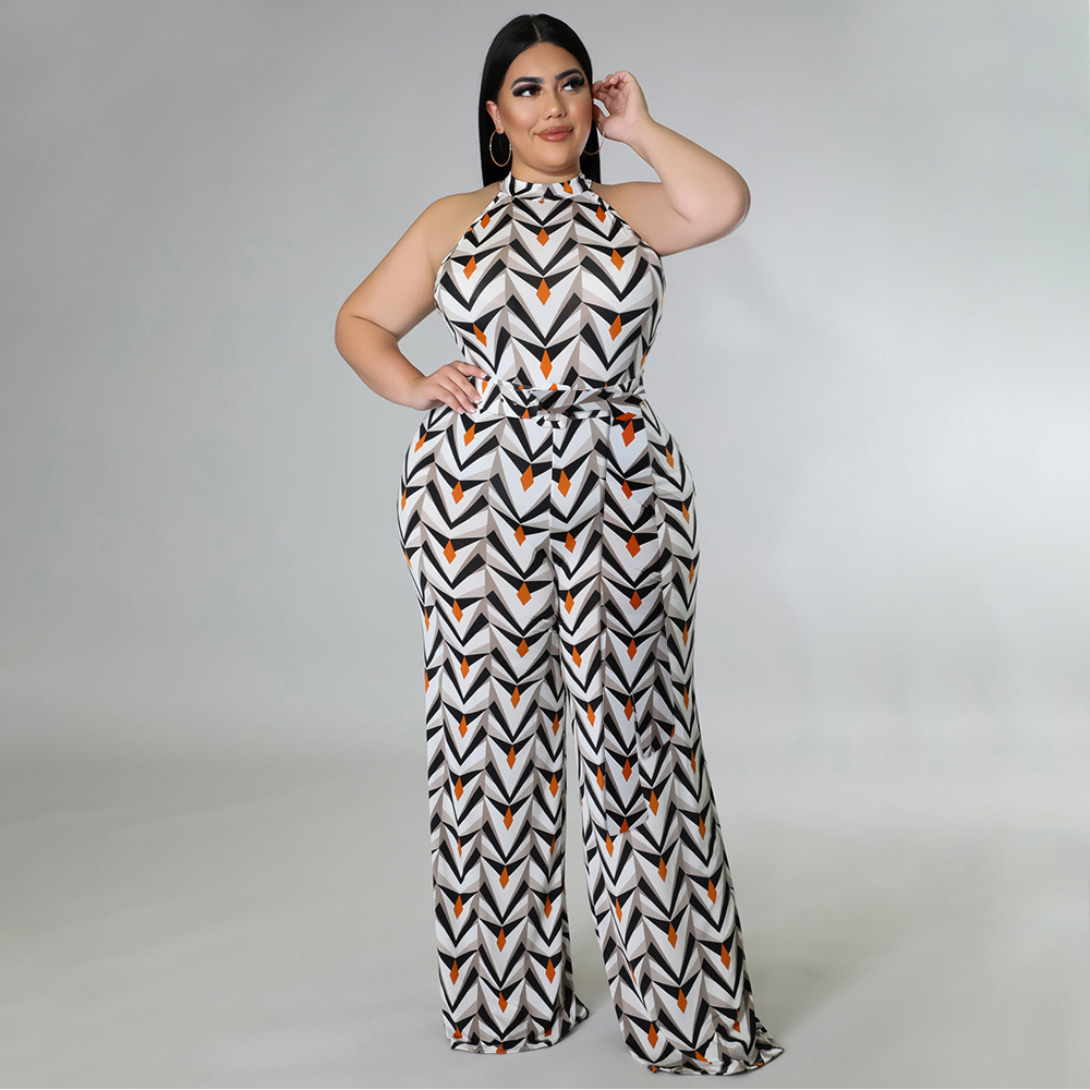 Women's Casual Halter neck Printed Jumpsuit With Belt Plus Size