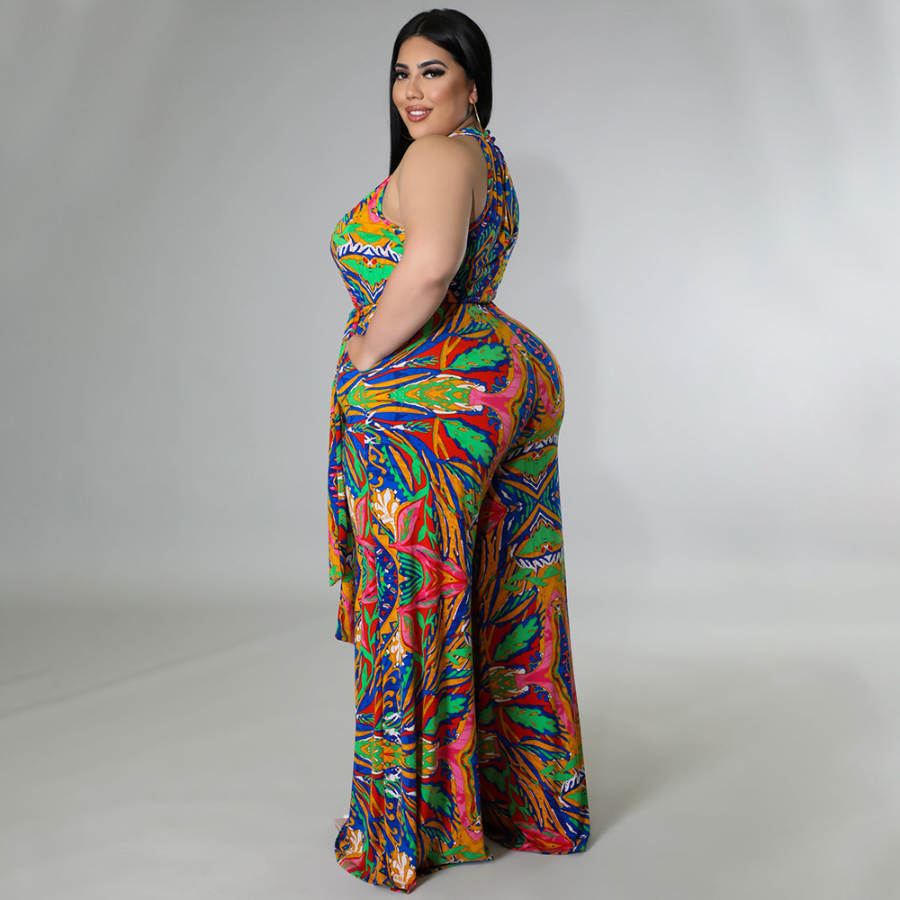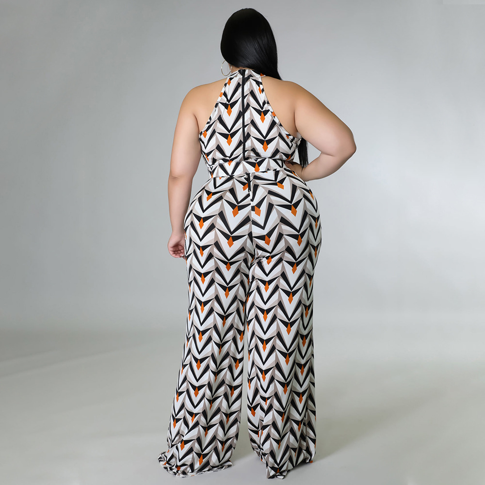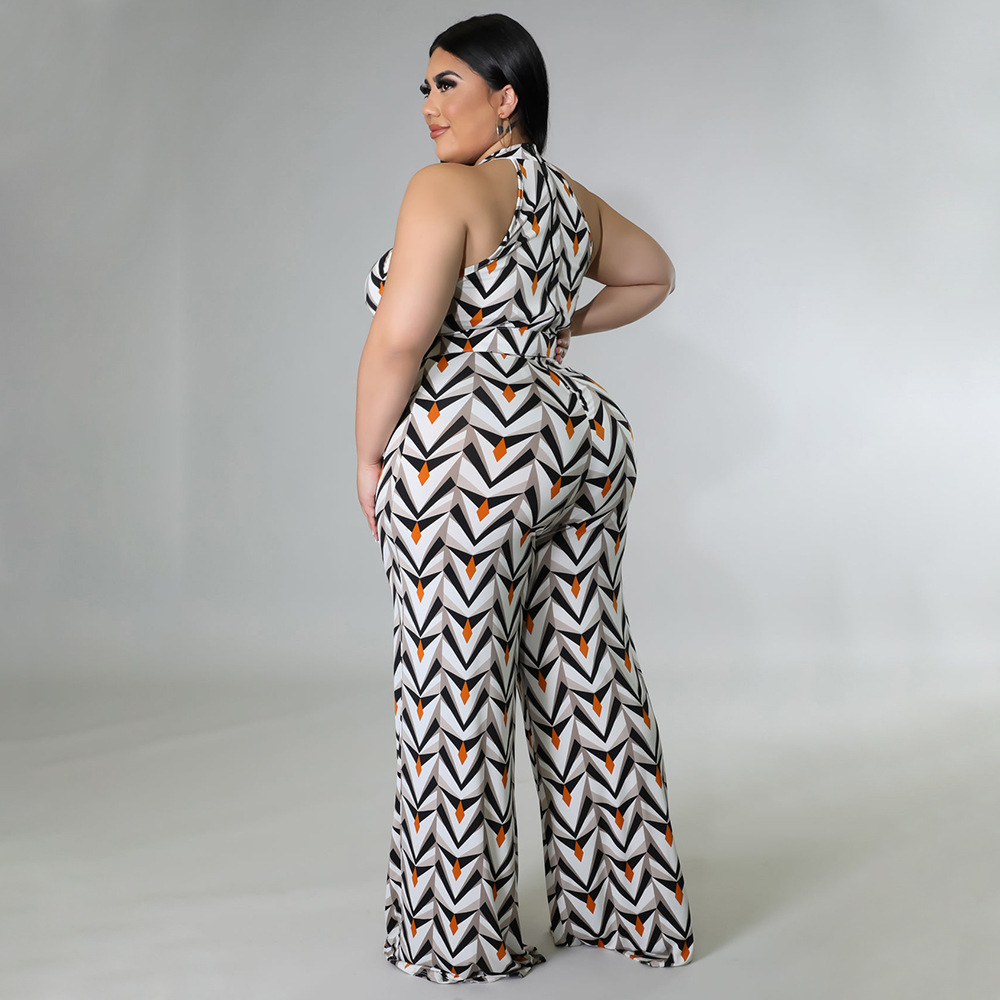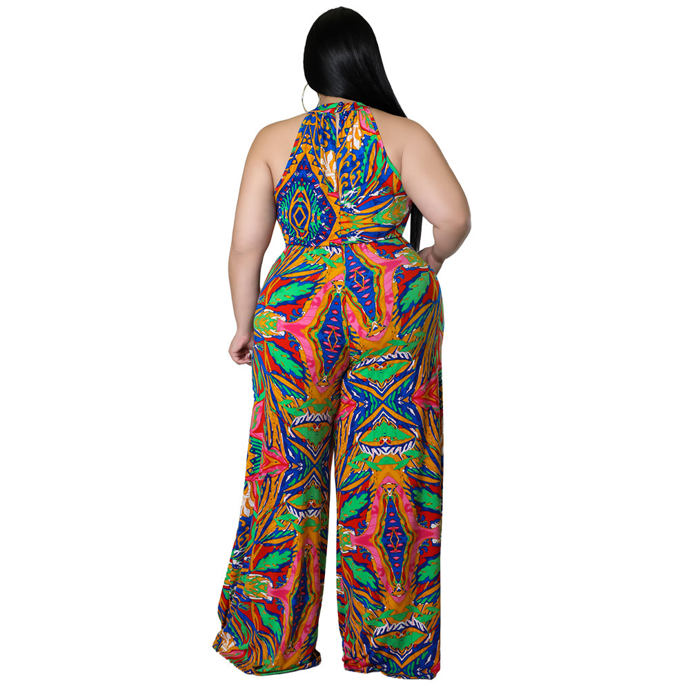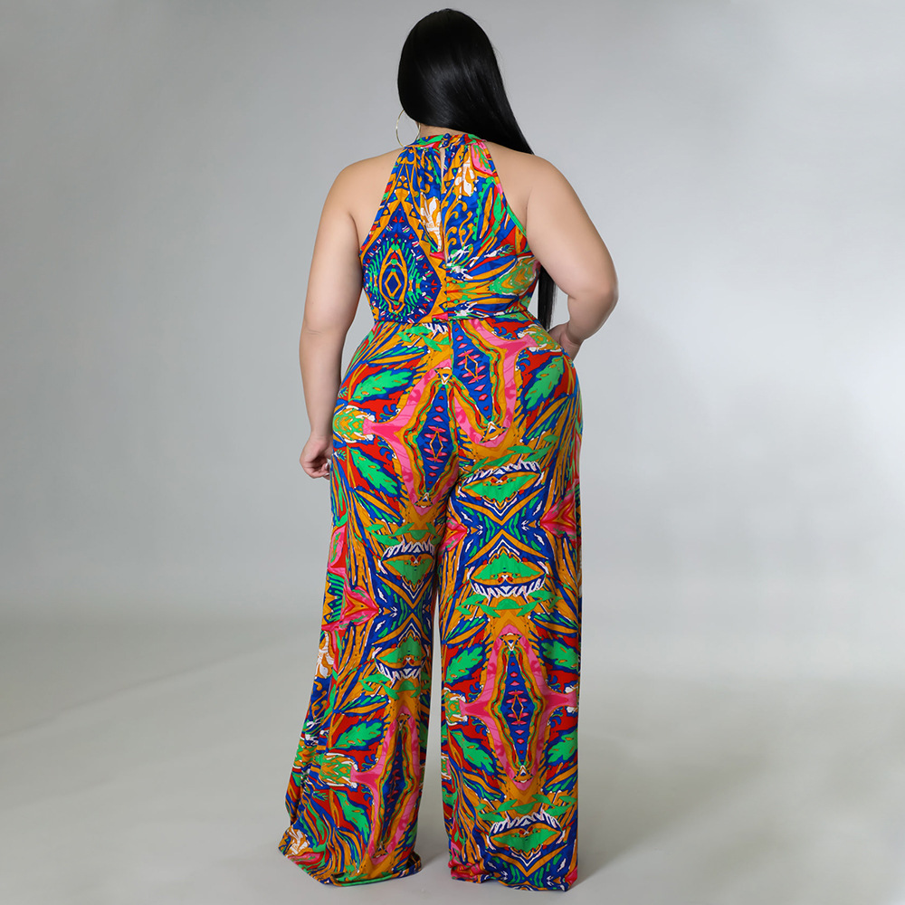 Women's Casual Halter neck Printed Jumpsuit With Belt Plus Size