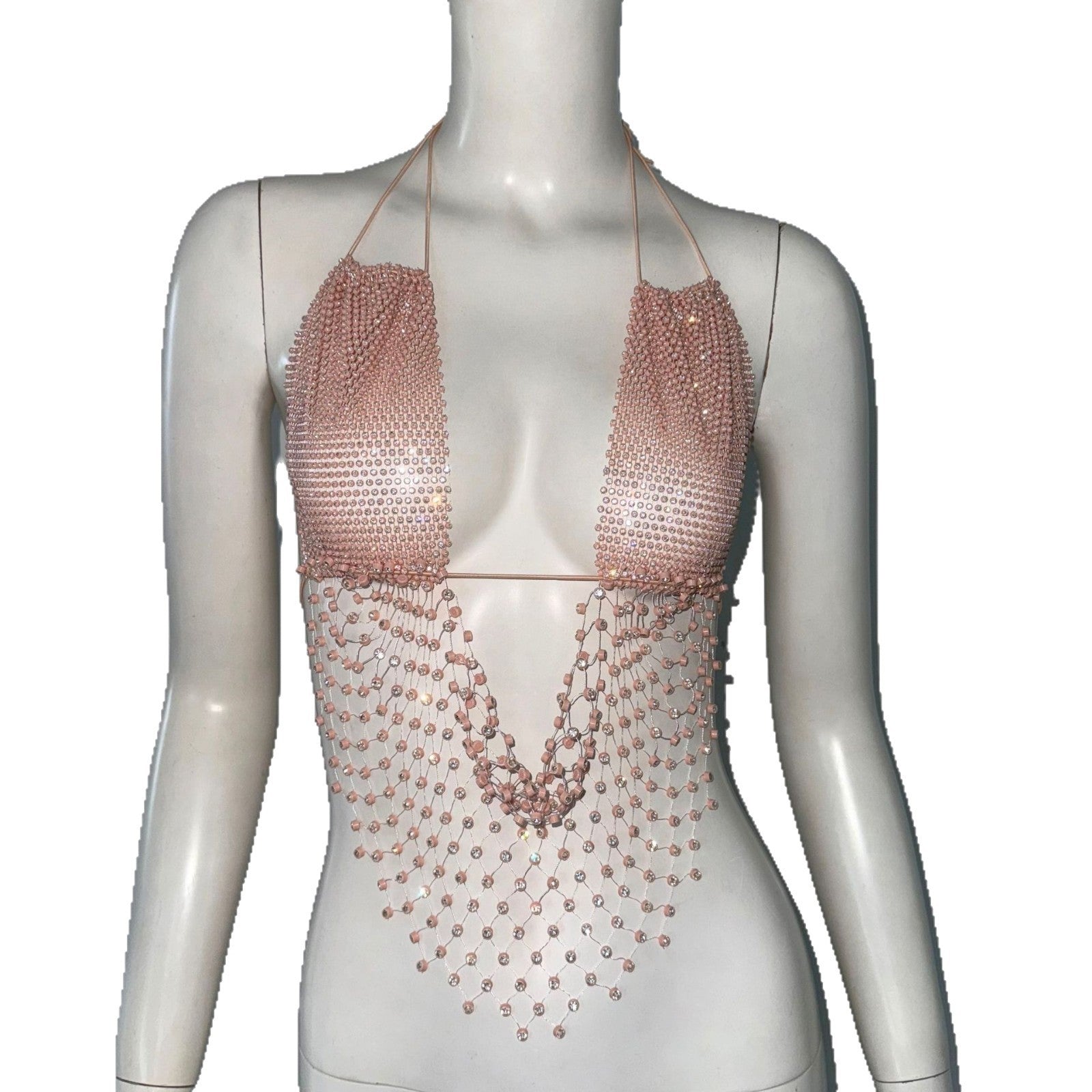Women's Cutout Sling Sexy Fishnet Rhinestone Top