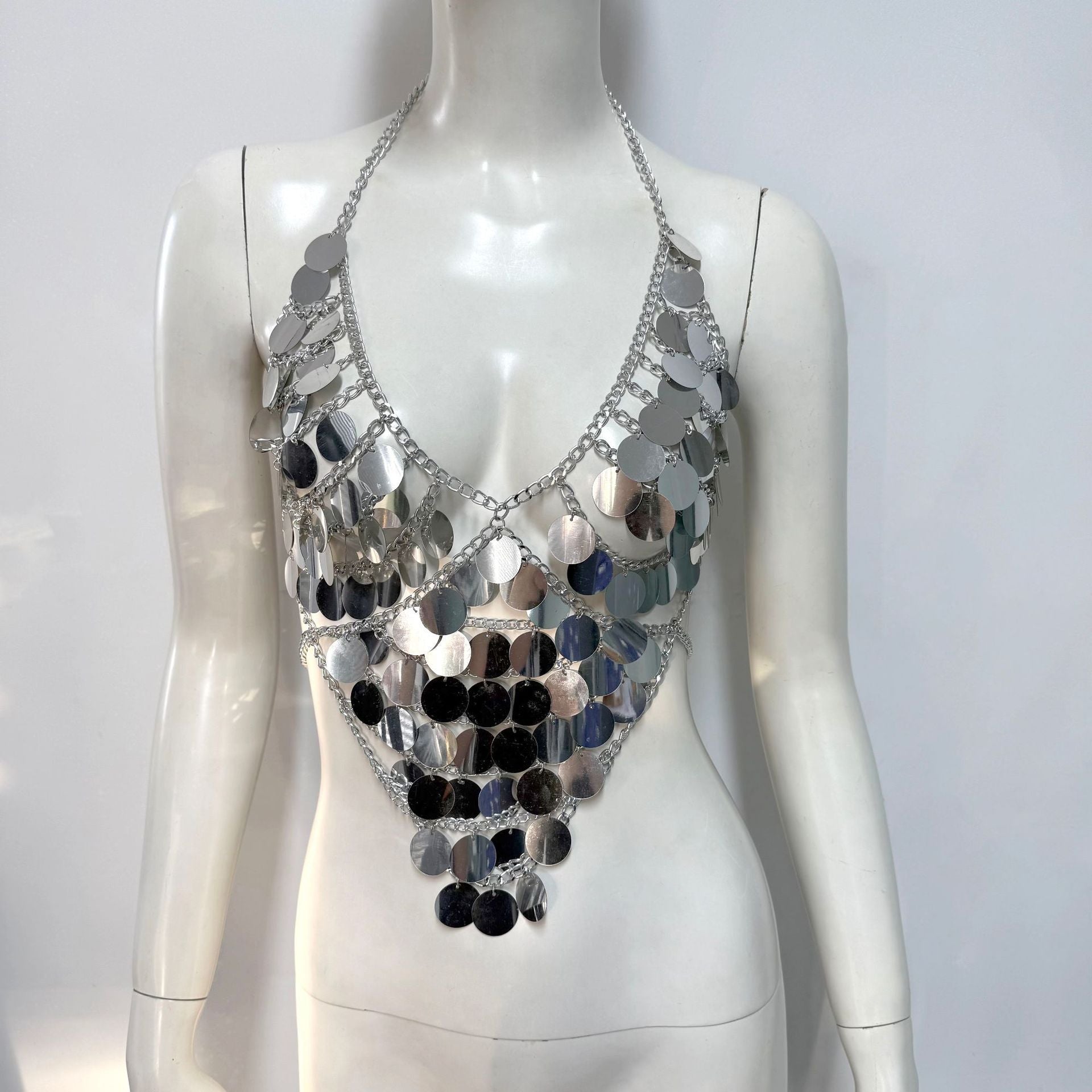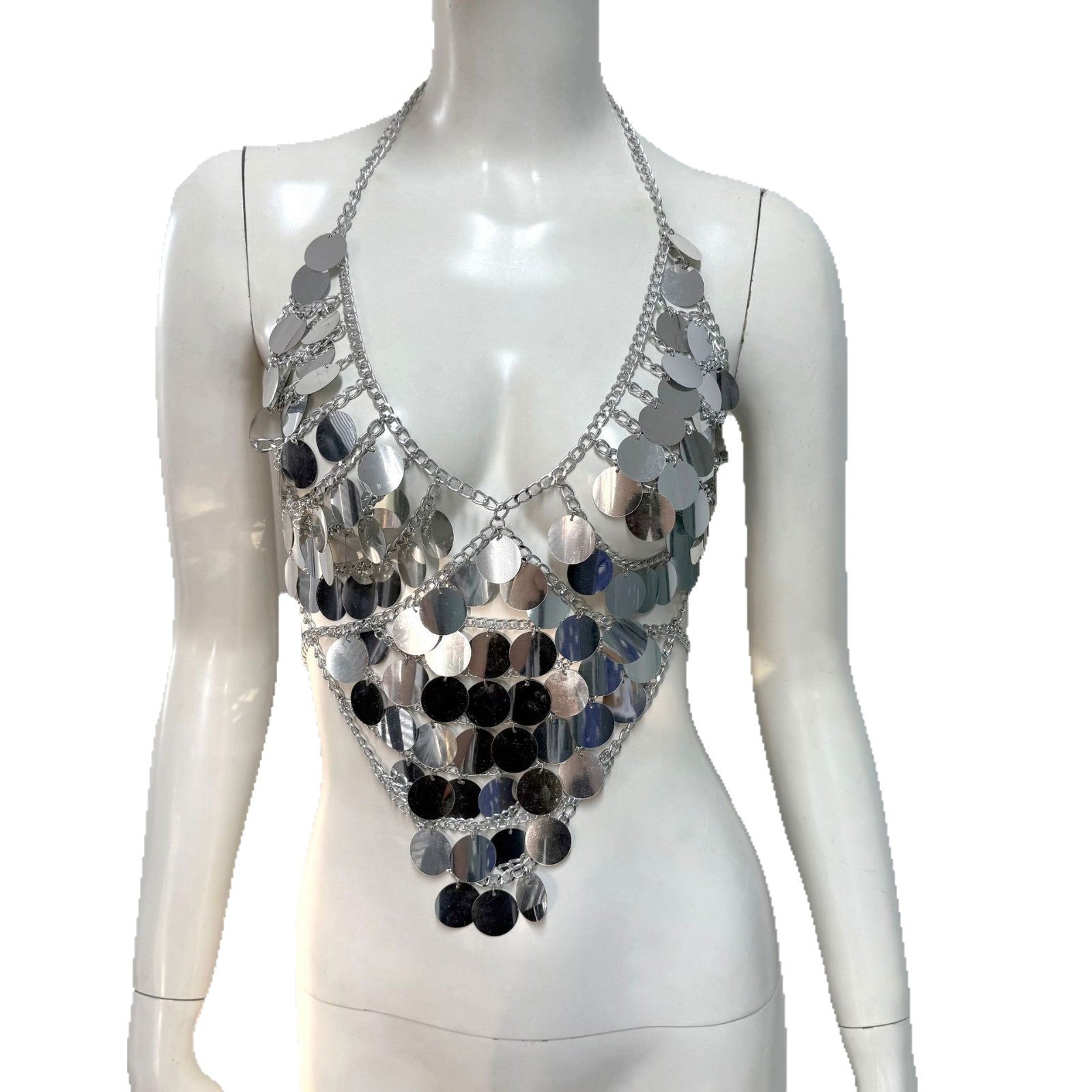 Women's Fishnet Sequin Stitching Halterneck Vest