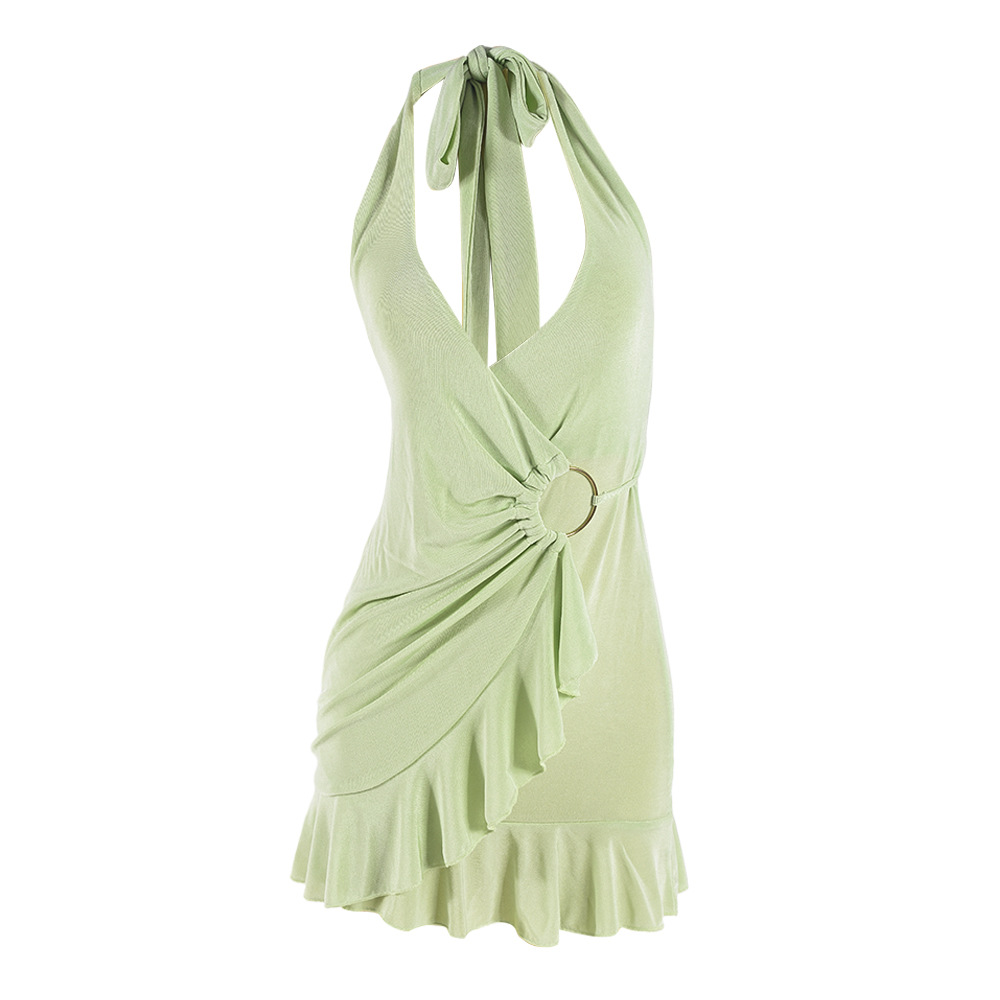 Women's Hollow Exposed Neck Bandeau Sexy Gloss Stretch Dress