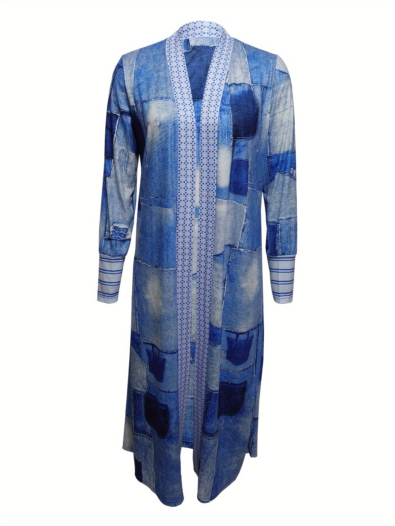 Women's Jacket Color Block Long Outer Sleeve Cardigan Casual Coat Open Front Coat Versatile Coat