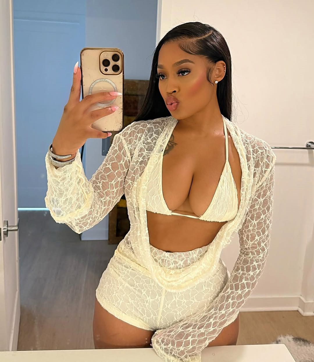 This three-piece set brings contemporary edge to your wardrobe with its striking geometric pattern in a warm apricot tone. The lace halter camisole features an open back and midriff-baring design, paired with sleek slim-fit shorts and a coordinating sling for versatile styling. Crafted from quality polyester with intricate jacquard detailing, this European-inspired ensemble captures street fashion at its finest. Available in sizes S, M, and L. Note: Asian sizing runs 1-2 sizes smaller; refer to our size chart for the perfect fit. Allow minor measurement variations and slight color differences from product images.