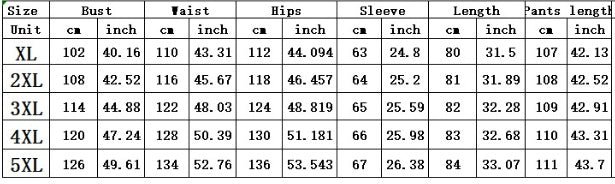 Size: XL,2XL,3XL,4XL,5XL