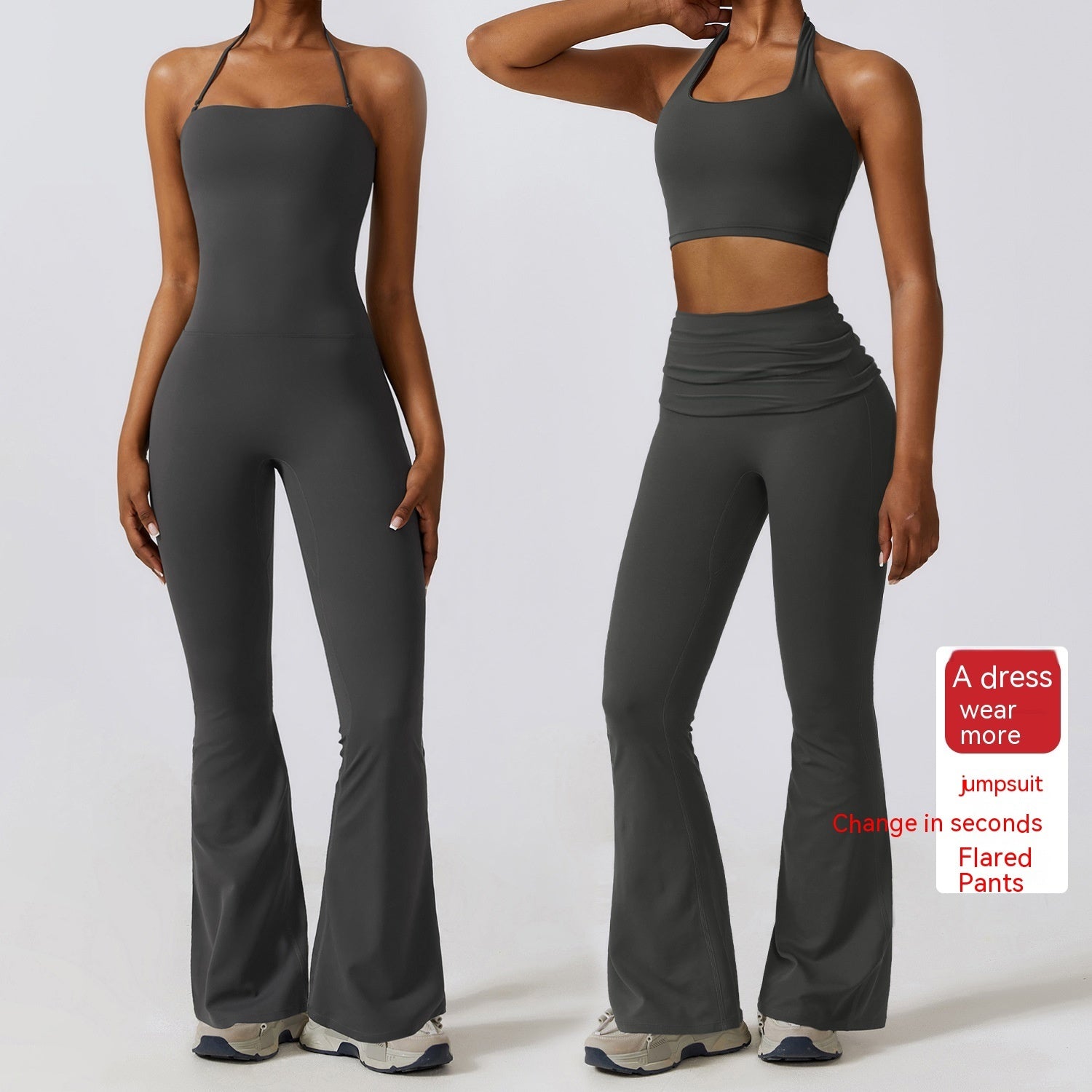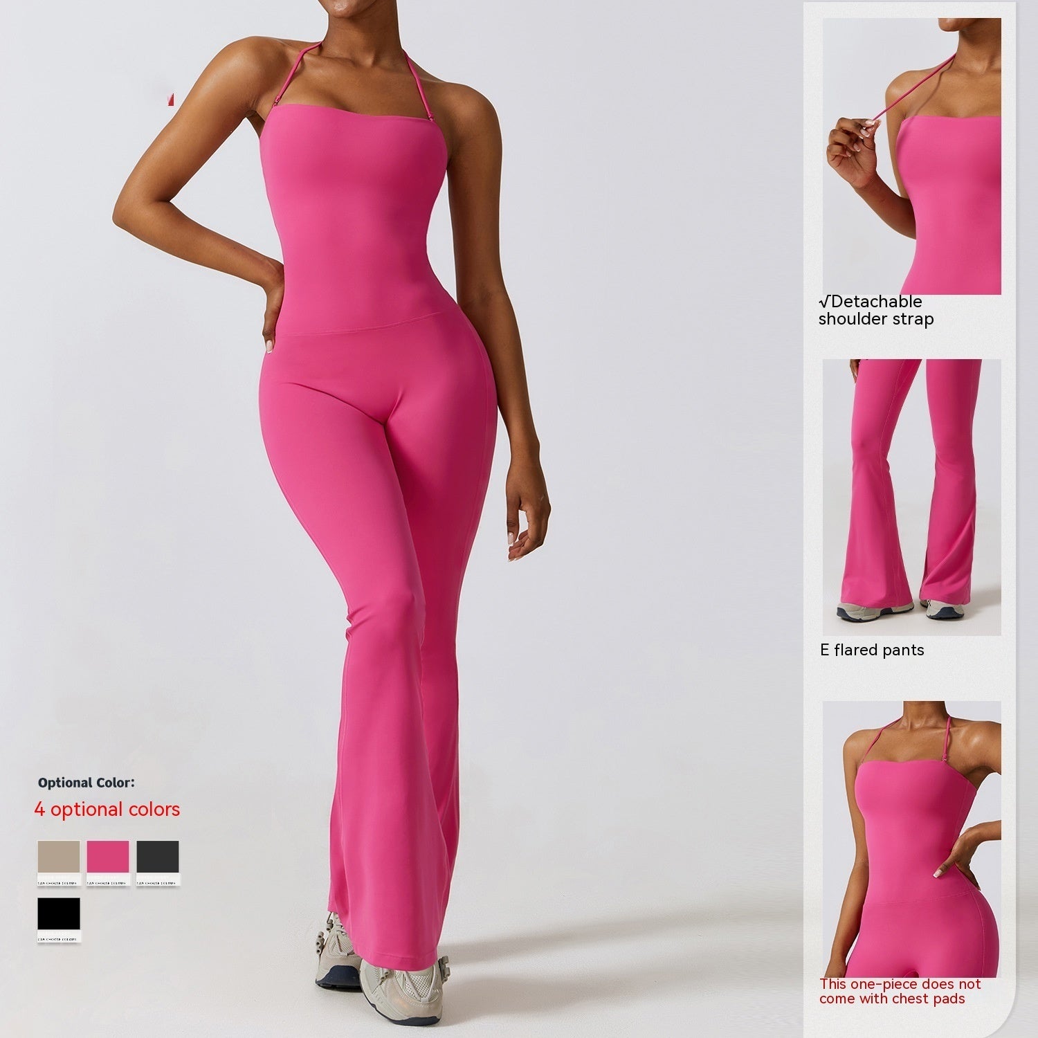 Women's Tight Yoga Jumpsuit Nude Feel Nylon Bell-bottom Pants
