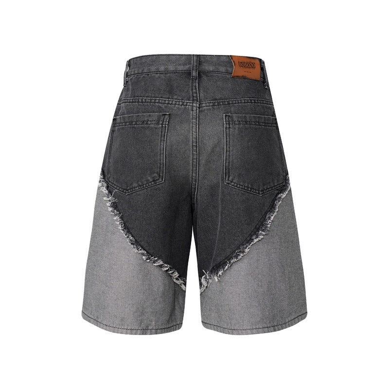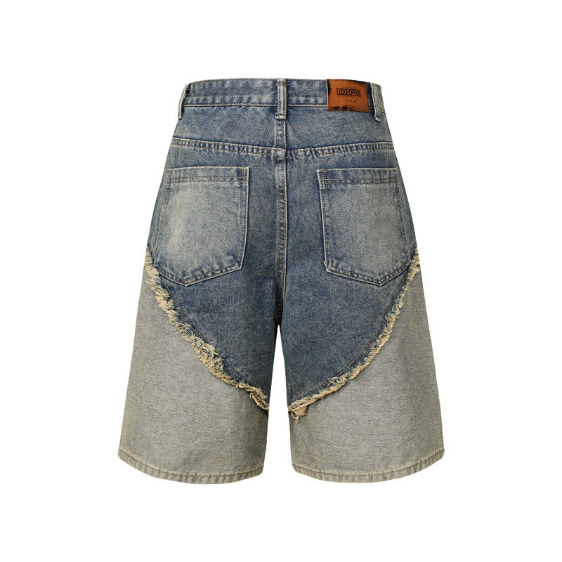 Worn Looking Washed-out Multi-colored Rough Edges Denim Shorts High-grade Personality Cropped Pants